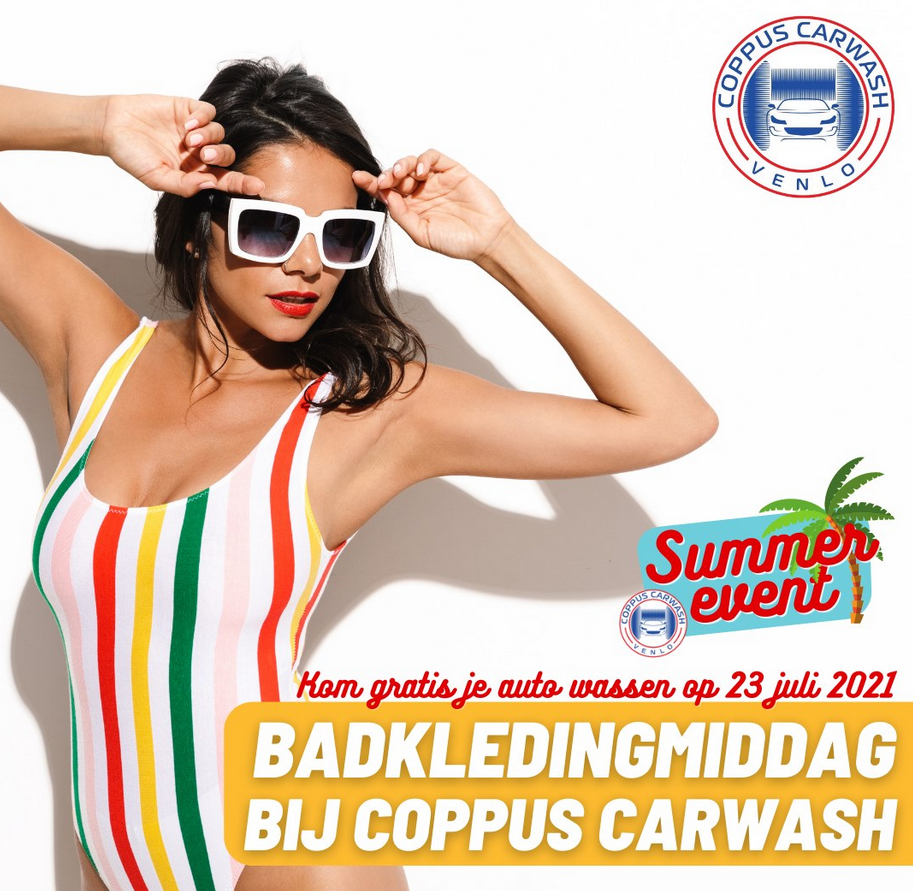 De zomervakantie is weer begonnen en Stijn Coppus van Coppus Carwash Venlo kon dat natuurlijk niet zomaar aan zich voorbij laten gaan en organiseerde een badkledingmiddag. Elke klant die vrijdag 23 juli tussen 12.00-15.00 uur in badkleding naar Coppus Carwash kwam kreeg de duurste wasbeurt gratis. Stijn Coppus: “Dat leek me wel een ludieke actie. Maar ik had absoluut geen idee wat de reactie op deze actie zou zijn. Ik denk dat tussen de 25 en 30 klanten die middag ons in badkleding hadden bezocht. Dat vind ik een goede score. Sommige kwamen met een T-shirt aan, maar we waren streng dus die moest ook echt uit.”